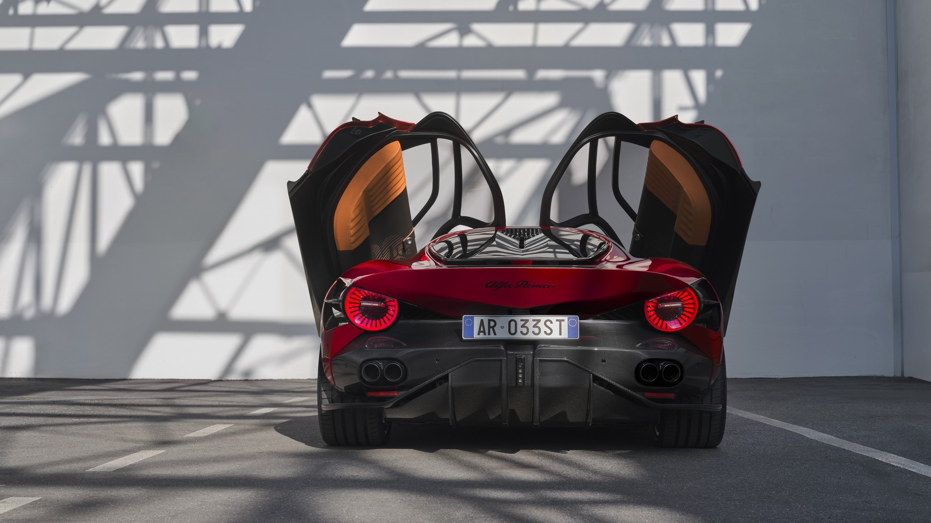 Certaines spécifications techniques de la nouvelle supercar le confirment. L’empattement de la 33 Stradale mesure 2,70 mètres, soit le même que celui du MC20, un véhicule toujours en production. La longueur totale de la nouvelle Alfa Romeo est de 4,64 mètres, ce qui la rend légèrement plus courte que la Maserati, qui mesure 4,67 mètres. Des pare-chocs plus courts feraient l’affaire. Maintenant, comparez la hauteur (1,23 mètre) et la largeur (1,97 mètre) de la nouvelle 33 Stradale avec celles de la MC20 (1,22 mètre), et vous verrez qu’Imparato pensait probablement que c’était mieux vaut réduire les coûts que d’imprimer le nom Alfa sur un châssis.