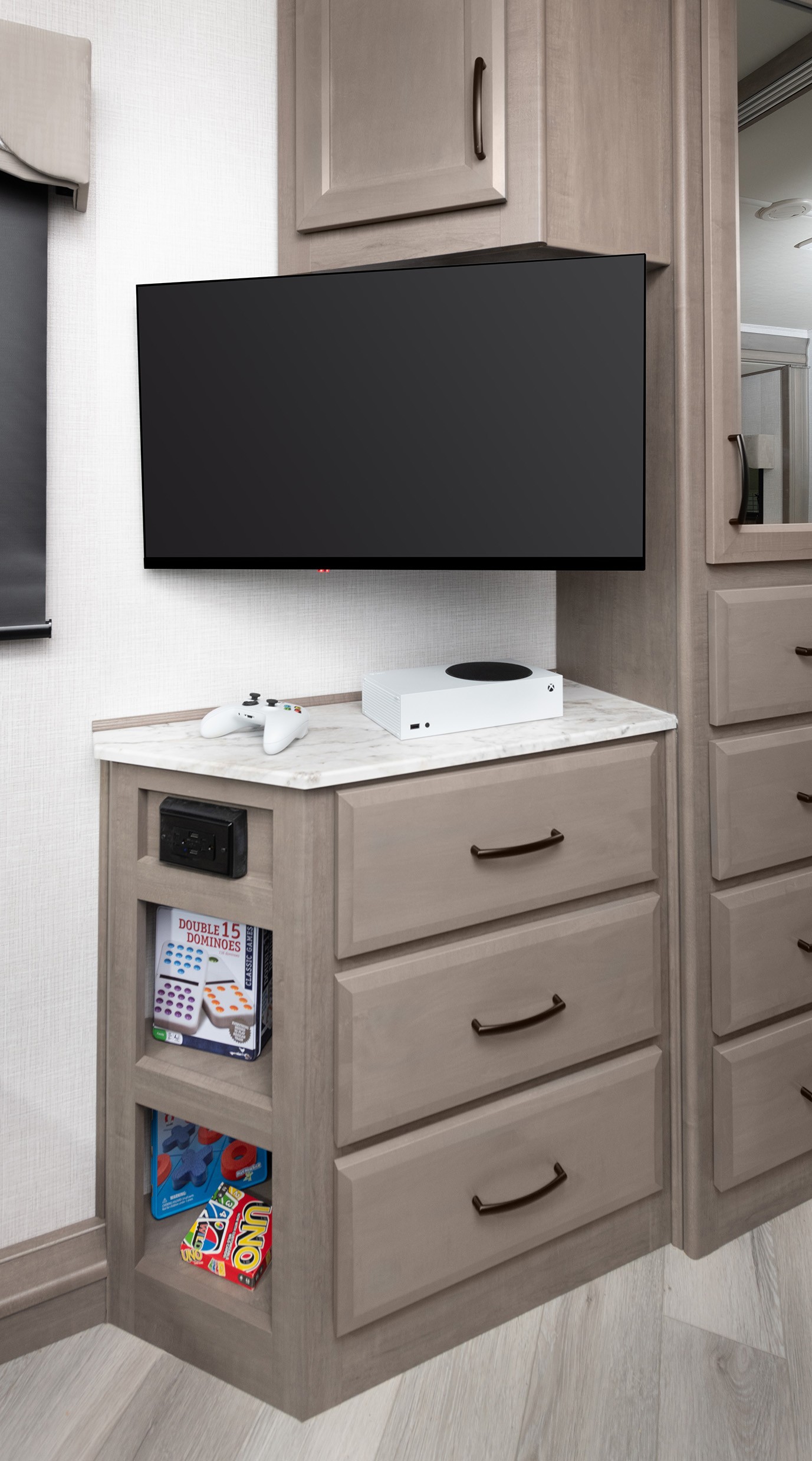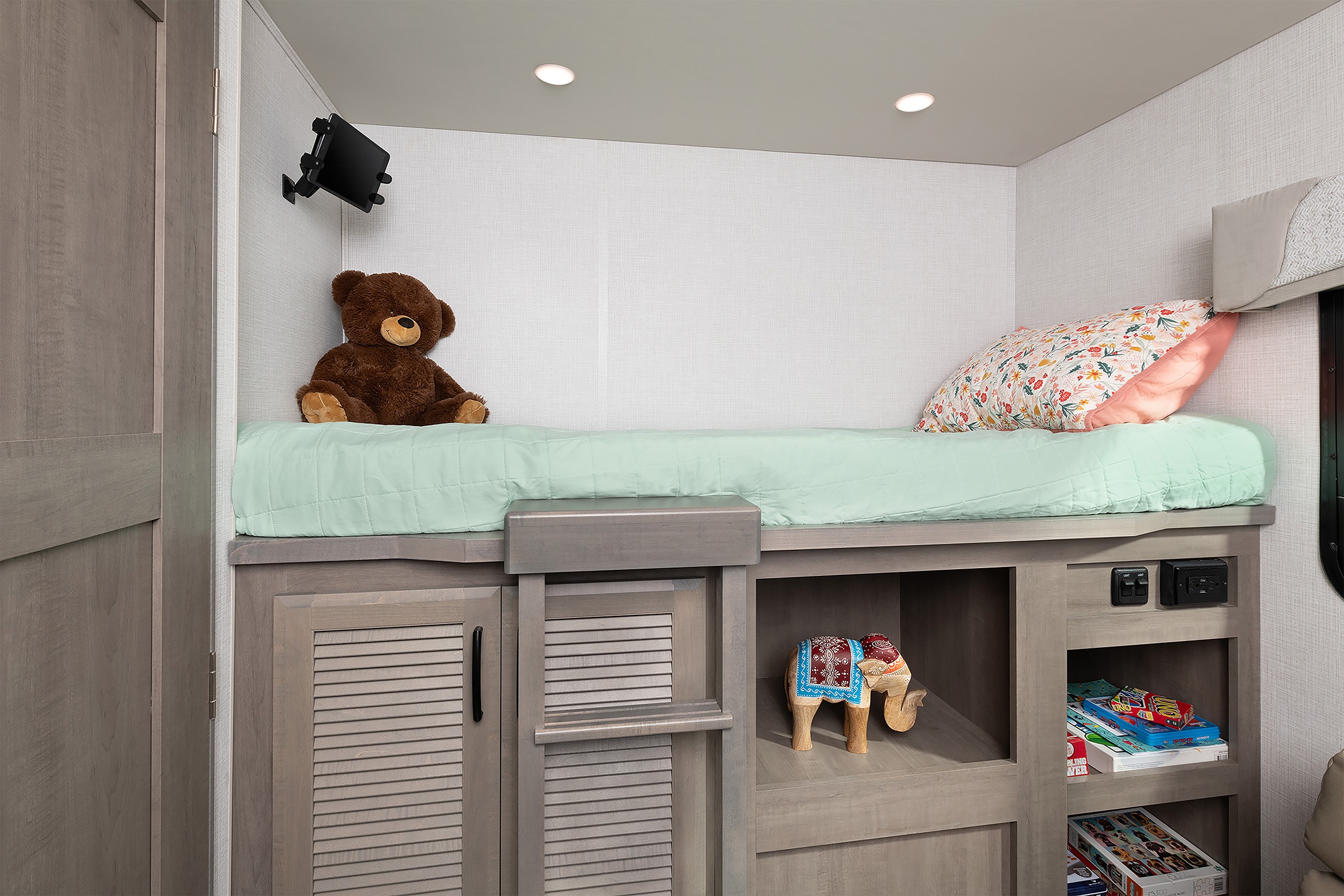 Une unité, le 36Y, introduit une nouvelle fonctionnalité dans la gamme appelée Kid Kave, une idée sympa qui concerne vos enfants. Considérez-le comme une Man Cave mais pour les enfants. C’est un espace solide pour contenir tout le chaos et le désordre que les enfants peuvent laisser derrière eux. Les plus petits disposent même de leur propre salle de bain, d’un centre de divertissement, de lits superposés et d’un canapé convertible dans cet espace.