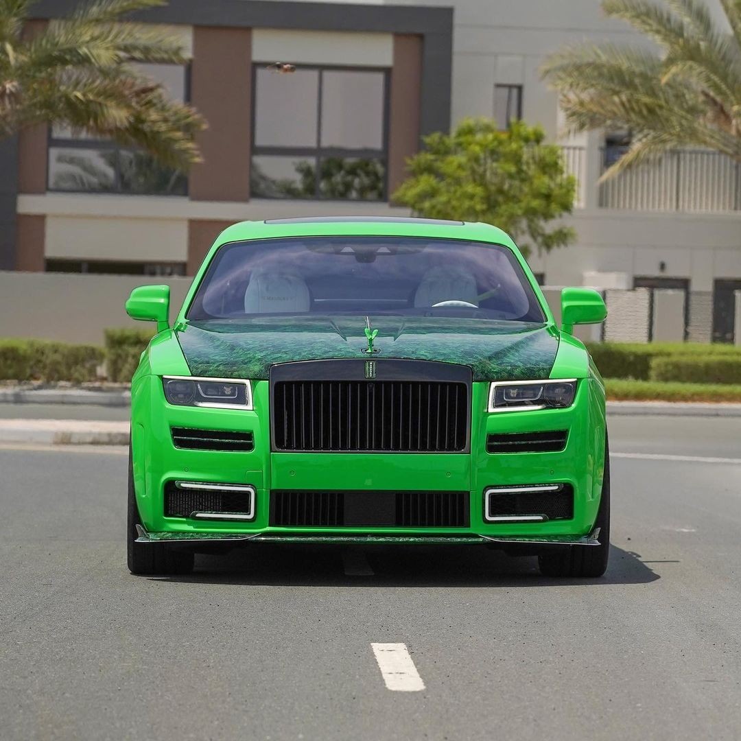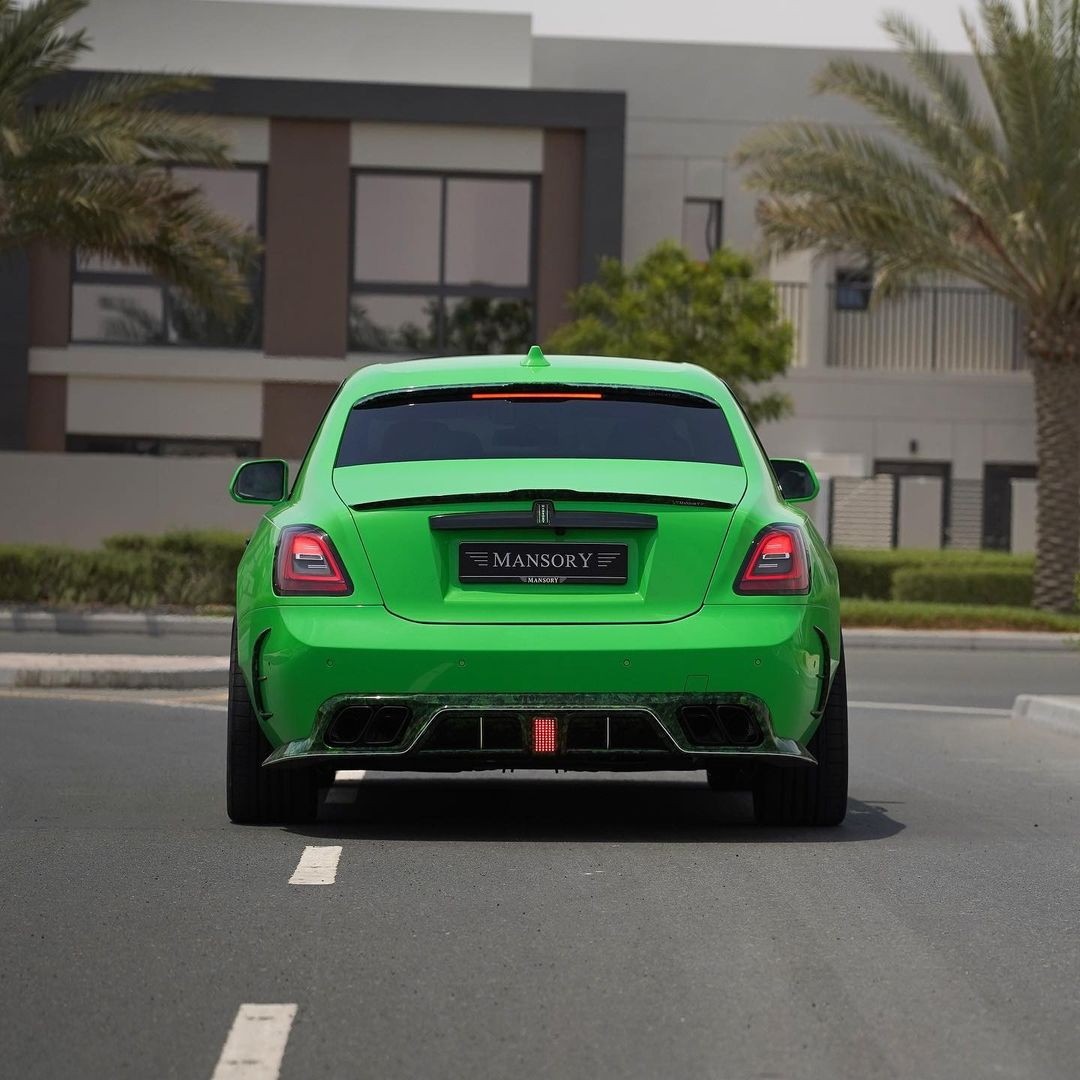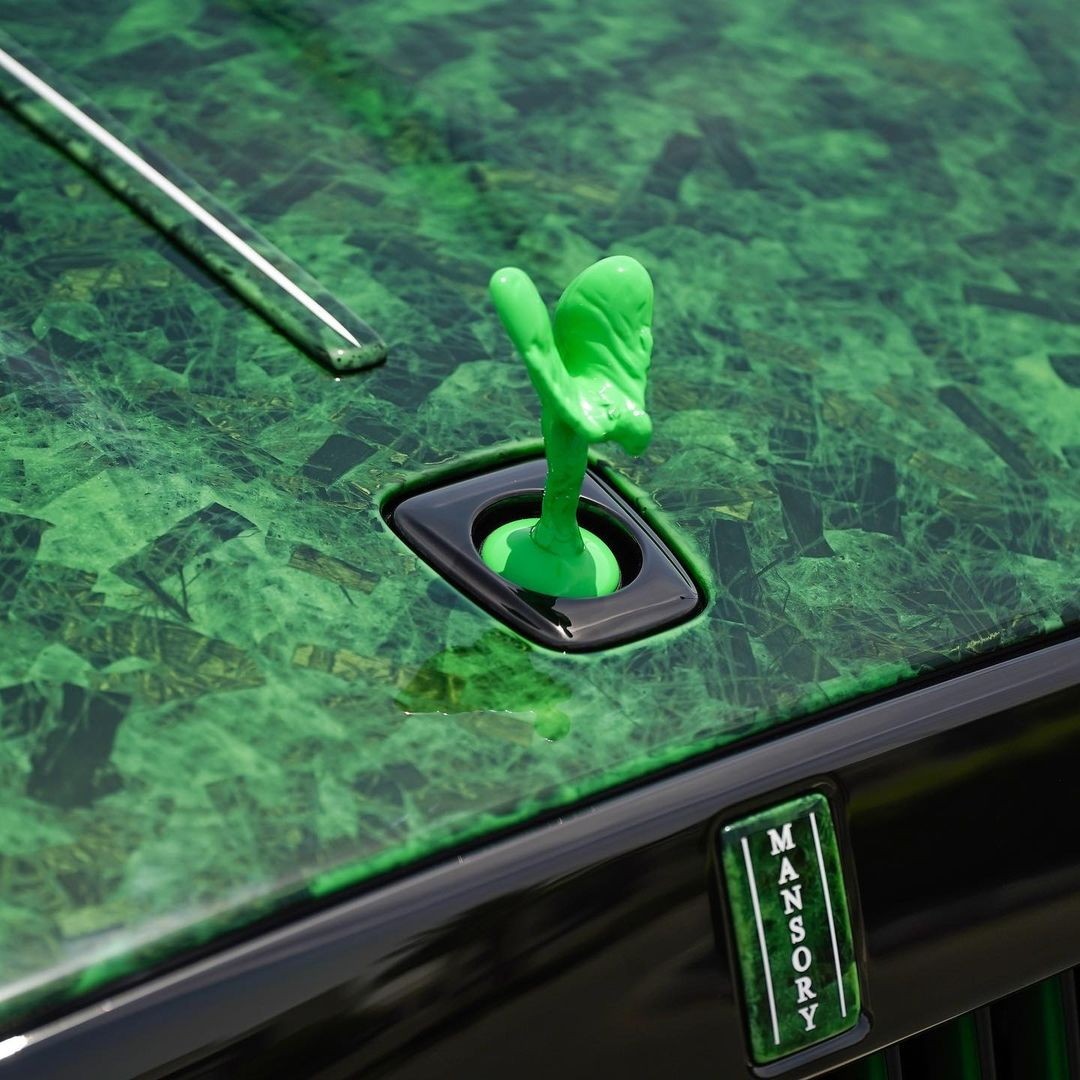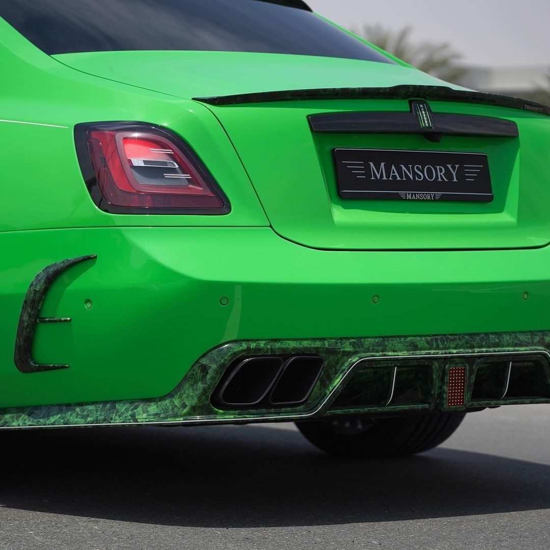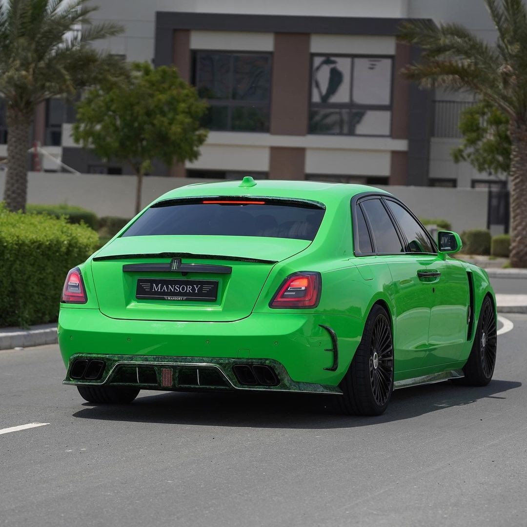 La Rolls-Royce Ghost présente également des accents en fibre de carbone de la même couleur verte. Mansory a ajouté quelques pièces supplémentaires à l’avant, sur les côtés et à l’arrière de la voiture. Ceux-ci comprennent un pare-chocs avant inférieur redessiné, un diffuseur, des jupes latérales, des fixations d’ailes et des ajouts de pare-chocs. Les logos Mansory ont remplacé les emblèmes Rolls-Royce, mais l’ornement emblématique du capot Spirit of Ecstasy est toujours là, maintenant en vert pour correspondre au reste de l’extérieur.