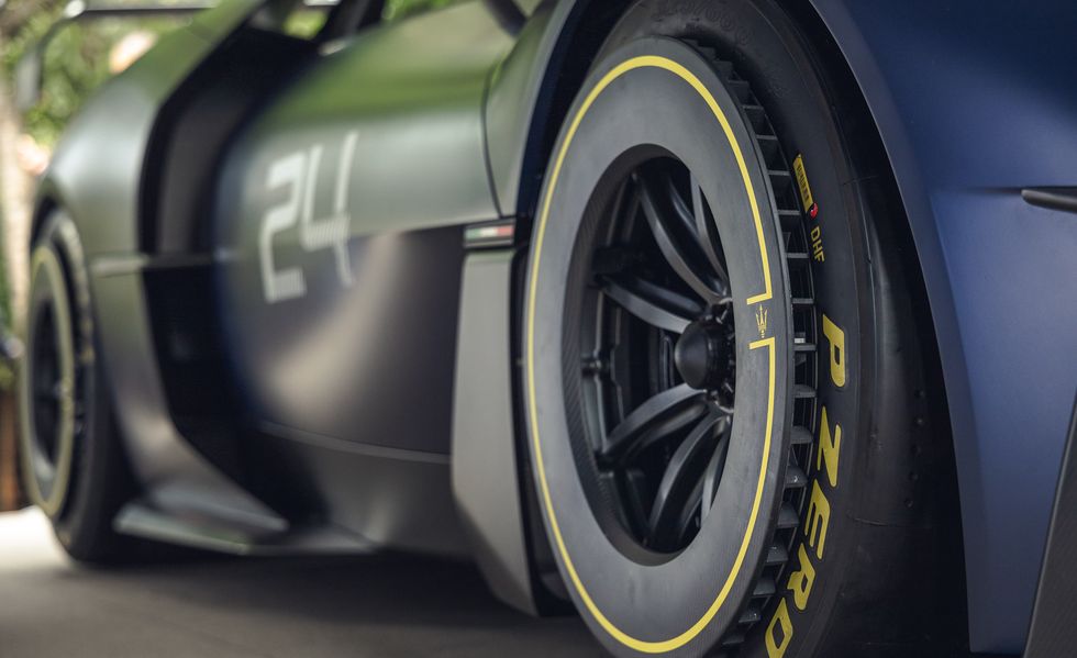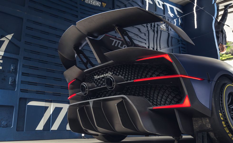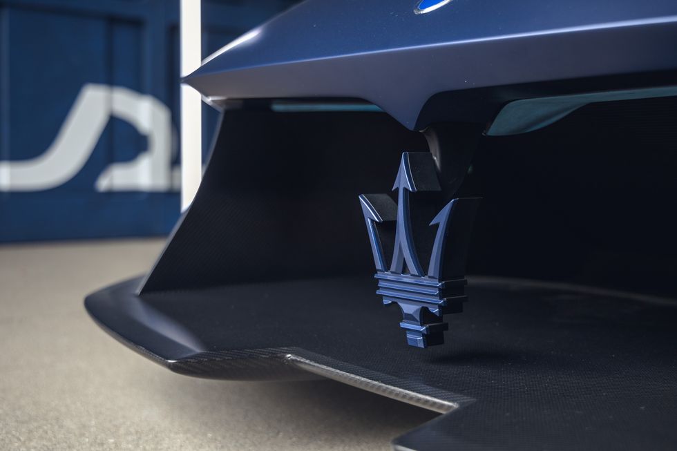 En plus de l’aile réglable, du soubassement plat et du séparateur qui fend l’air, également connu sous le nom de kit voiture de piste standard, Maserati a installé une colonne vertébrale longitudinale. Il divise l’admission du moteur sur le toit et augmente la stabilité dans les virages et l’efficacité de l’aileron arrière. De grandes écopes latérales, un détail de conception qui n’existe pas sur le MC20 de route, alimentent les refroidisseurs intermédiaires et les freins arrière.