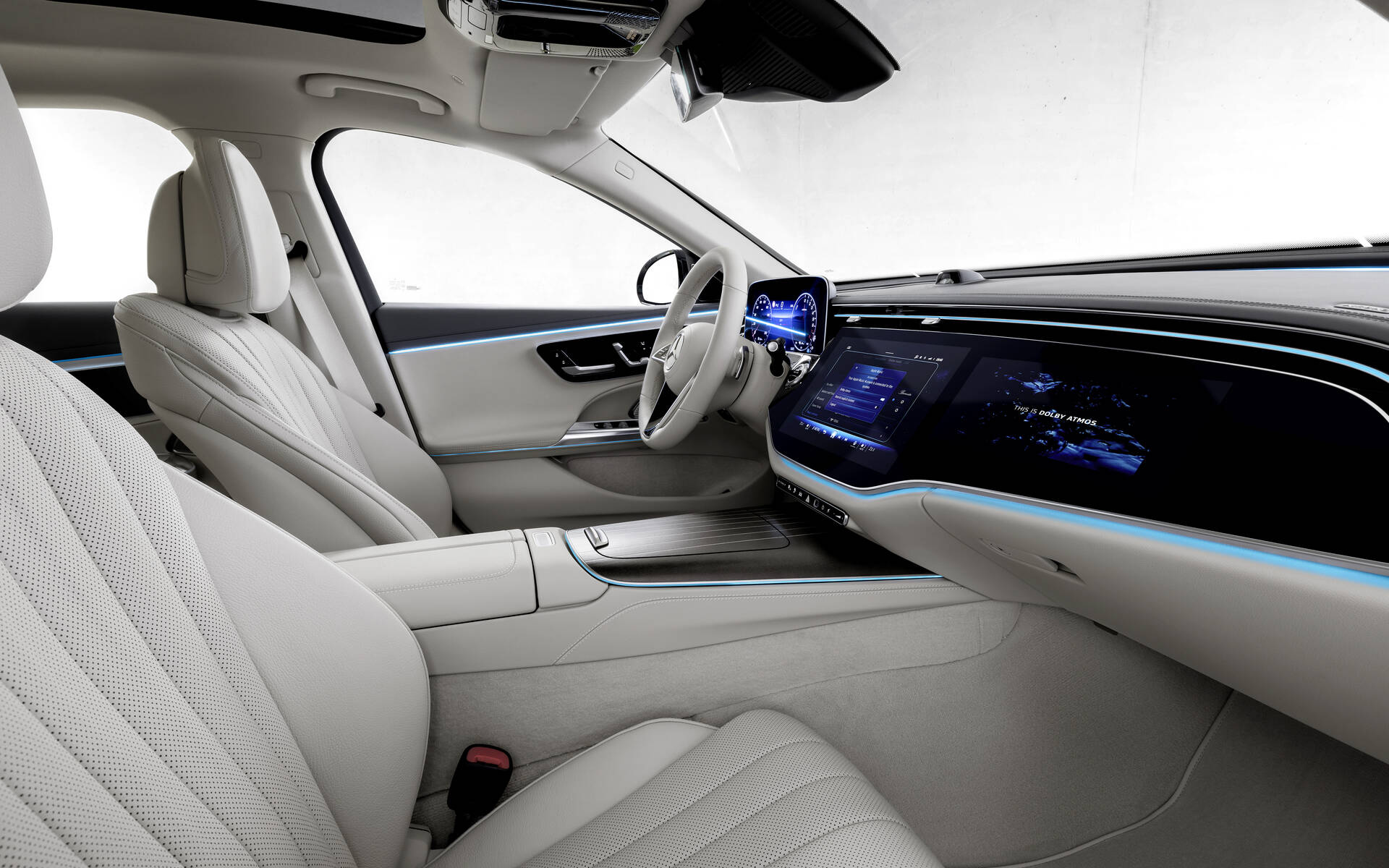 L’intérieur de la Classe E est conçu pour le confort et la qualité des passagers. L’espace passager semble généreux sur les photos et l’intérieur est garni de matériaux riches tels que la sellerie en cuir et les garnitures en métal. Les fonctions d’infodivertissement et de connectivité sont également abondantes, avec un affichage numérique derrière le volant pour les jauges de la voiture et un écran séparé au centre du tableau de bord pour l’infodivertissement. Mercedes-Benz a également intégré des fonctionnalités intelligentes, telles qu’une caméra selfie et des applications tierces téléchargeables de TikTok, Angry Birds et Zoom.